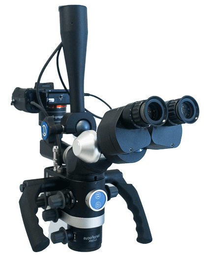 Микроскоп из Вецлара (“Города оптики”) в Германии. Во время лечения: минимально обрабатываем зубы, выявляем все скрытые кариесы, сохрянем анатомию и эстетичность зубов